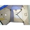 Также палатка оснащена двумя внутренними юбками с системой крепления пола, которая полностью исключает проникновение холодного воздуха внутрь палатки, что очень важно для рыбалки при сильном ветре и низкой температуре.